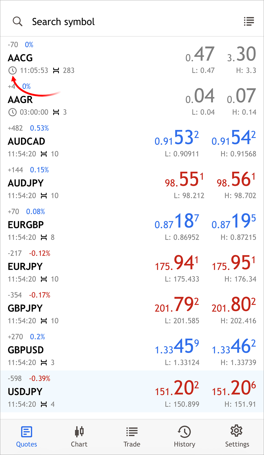 2. 修复了 "报价" 部分的价格延迟指示。在移动设备上,相应的图标可能没有在扩展视图模式下出现。